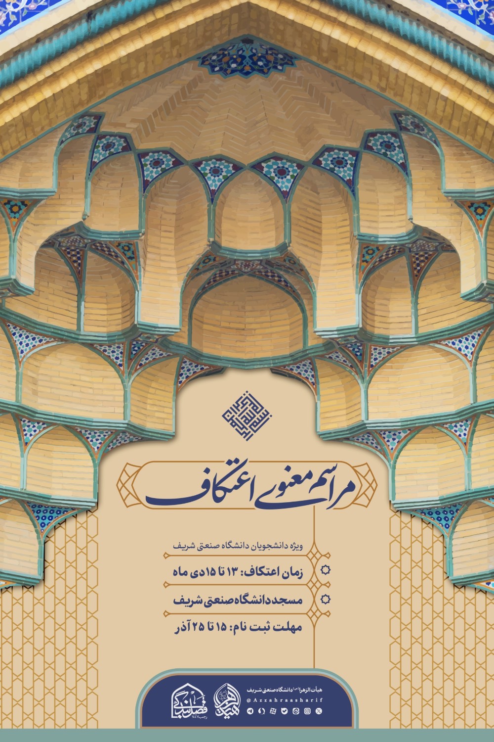 ویژه استادان، دانشجویان و کارکنان دانشگاه صنعتی شریف مسجد دانشگاه صنعتی شریف ۱۳ تا ۱۵ دی ۱۴۰۴ ثبتنام از ۱۵ الی ۲۵ آذر